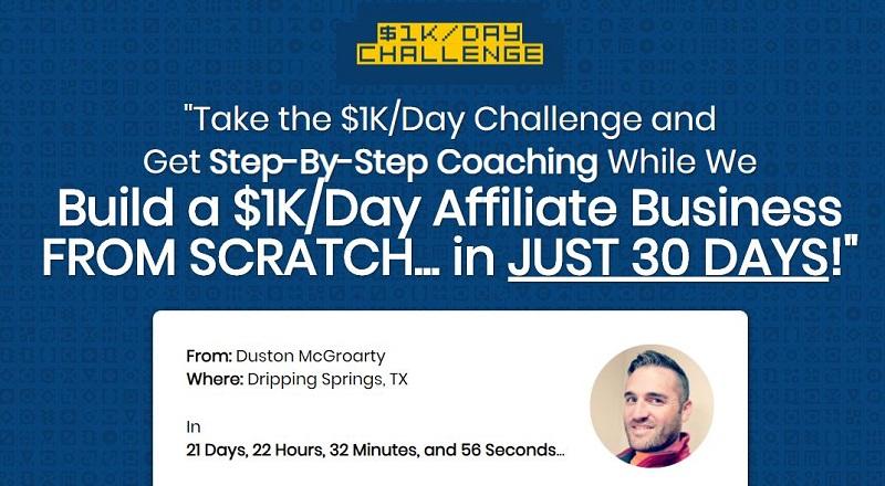 Take the $1K/Day Challenge and Get Step-By-Step Coaching While We Build A $1K/Day Affiliate Business FROM SCRATCH… in JUST 30 DAYS!”